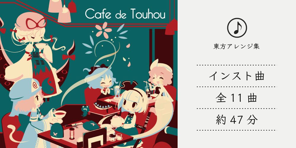 ジャズや、リラックスミュージックの要素を取り入れた、東方妖々夢のカフェ風アレンジ。 オシャレだけど気取らない、気軽に聞ける全11曲(約47分)です。