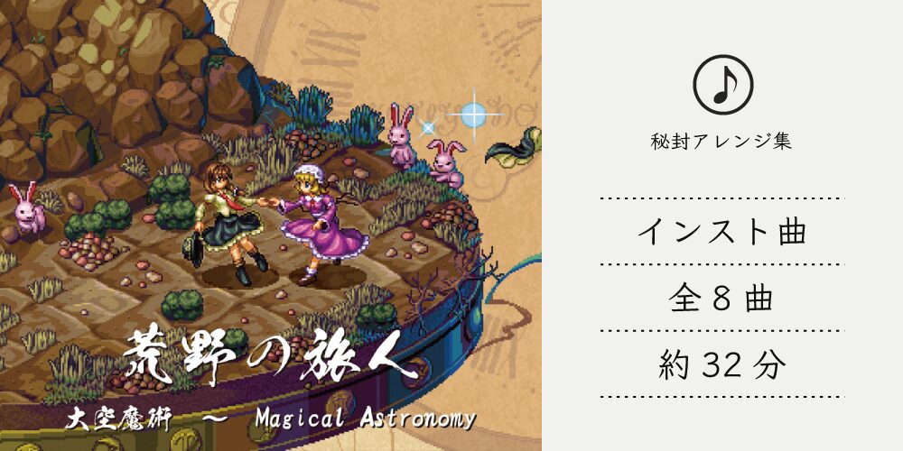 ノスタルジックな気分に浸りたい人の、民族音楽集。秘封倶楽部「大空魔術」を荒野らしくアレンジした全8曲/約32分。